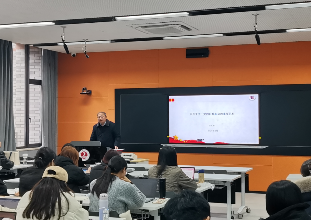 2024年3月4日,在明德楼253教室,吕延勤院长在《习近平新时代中国特色社会主义思想专题研究》的学位核心课上,讲解专题《自我革命:跳出历史周期律的第二个答案》。吕延勤院长是本课程团队的课程导师,马院老师们进行现场观摩。