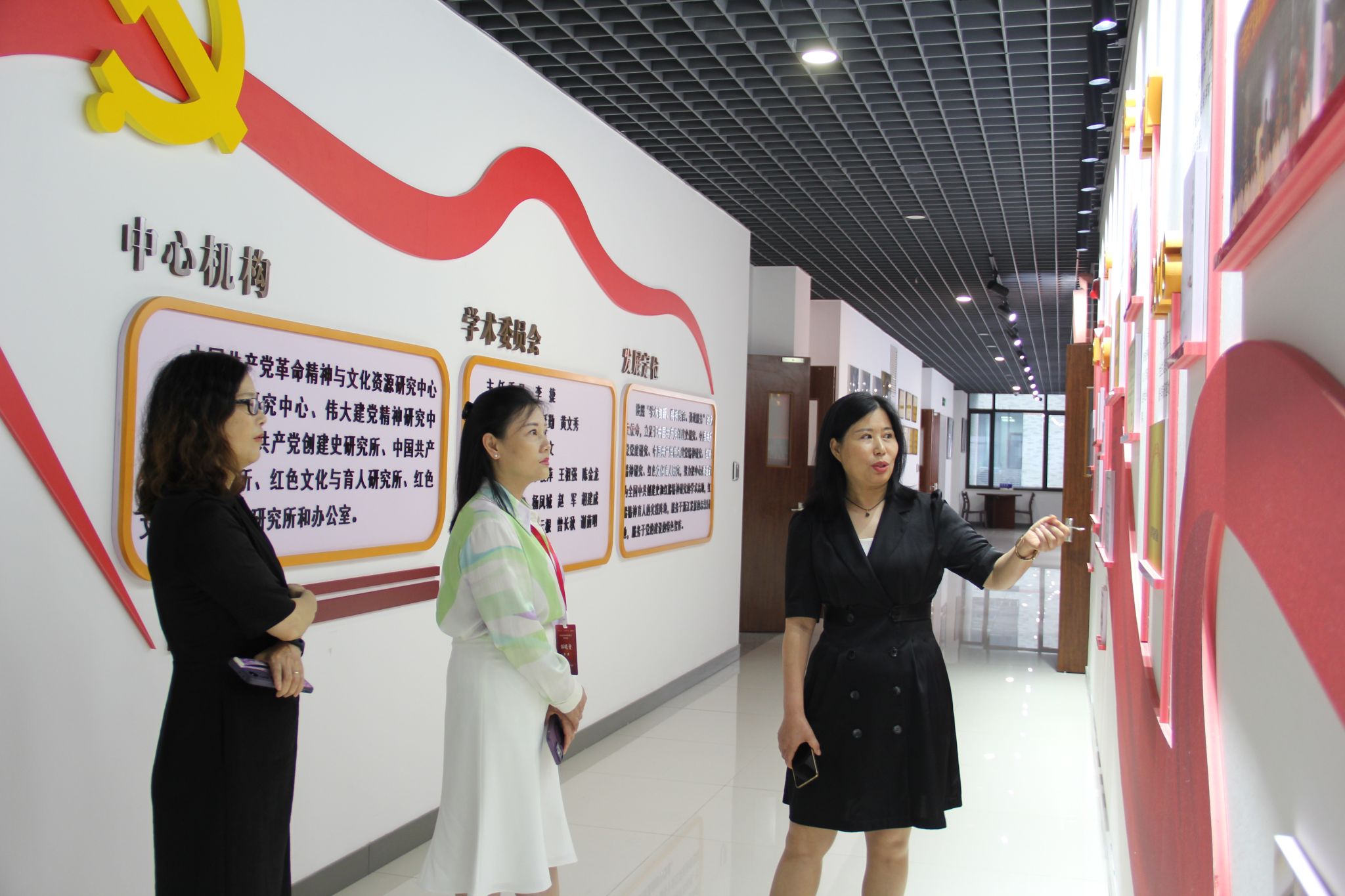邹晓青副校长一行还考察了红船精神研究中心,参观了伟大建党精神与中共创建展厅,听取了红船精神研究中心坚持学术创新、做强红船精神育人的学科基础之历程。