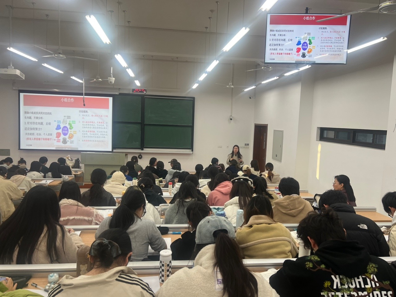 副院长张笑笑开展了《以保障和改善民生为重点加强社会建设》为题的教学公开课。本次公开课创新性引入结构式研讨,通过规范教学流程、明确目标方法、激发学生参与等方式,旨在创新教学形式,大幅提升思政课的抬头率和学生的参与度。