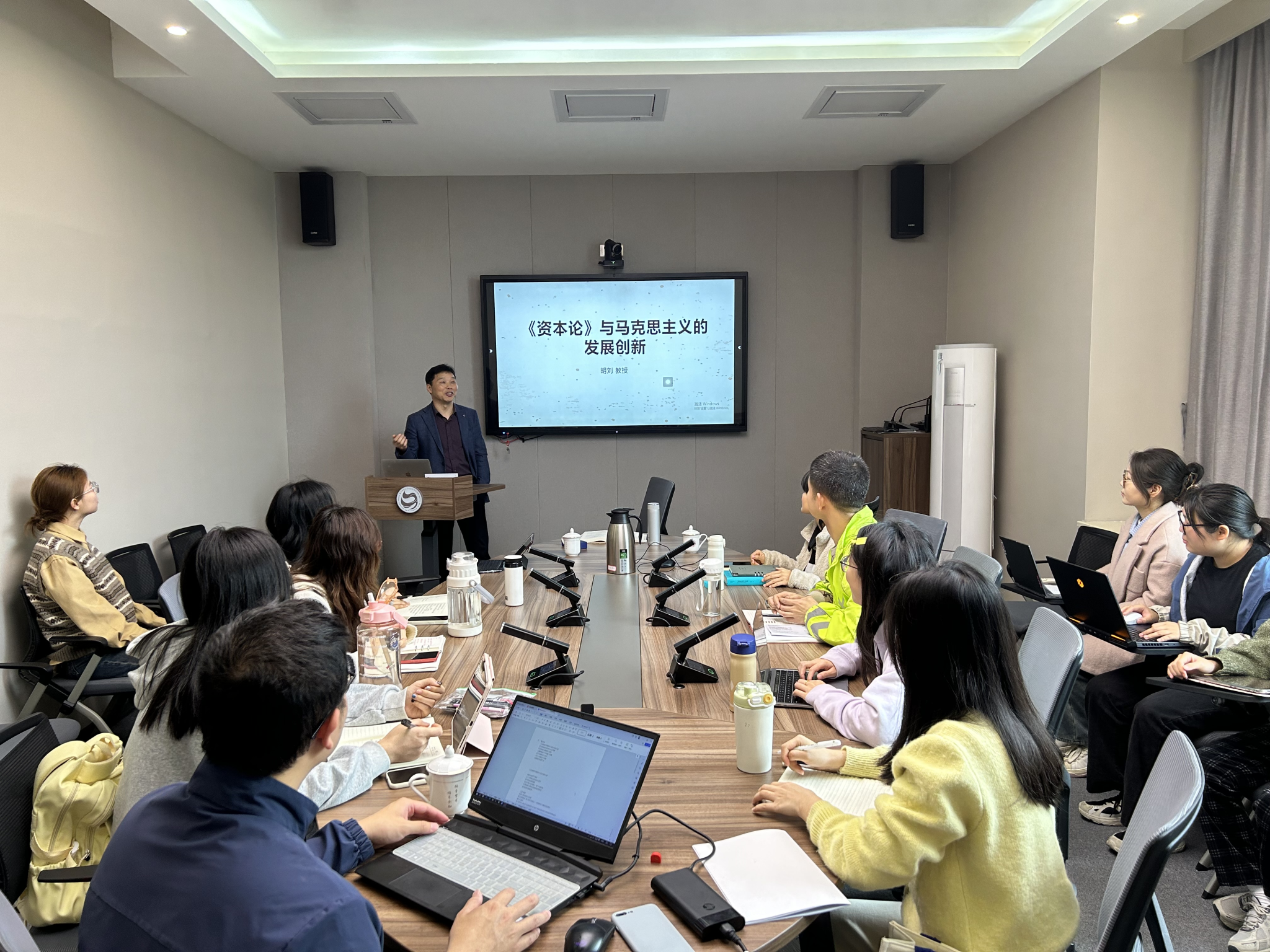 2024年4月12日至13日,西南大学2DFan 胡刘教授来2DFan 为研究生做题为《<资本论>与马克思主义的发展创新》系列讲座。学院2023级部分硕士研究生聆听讲座,马克思主义基本原理方向负责人康文龙教授主持讲座。