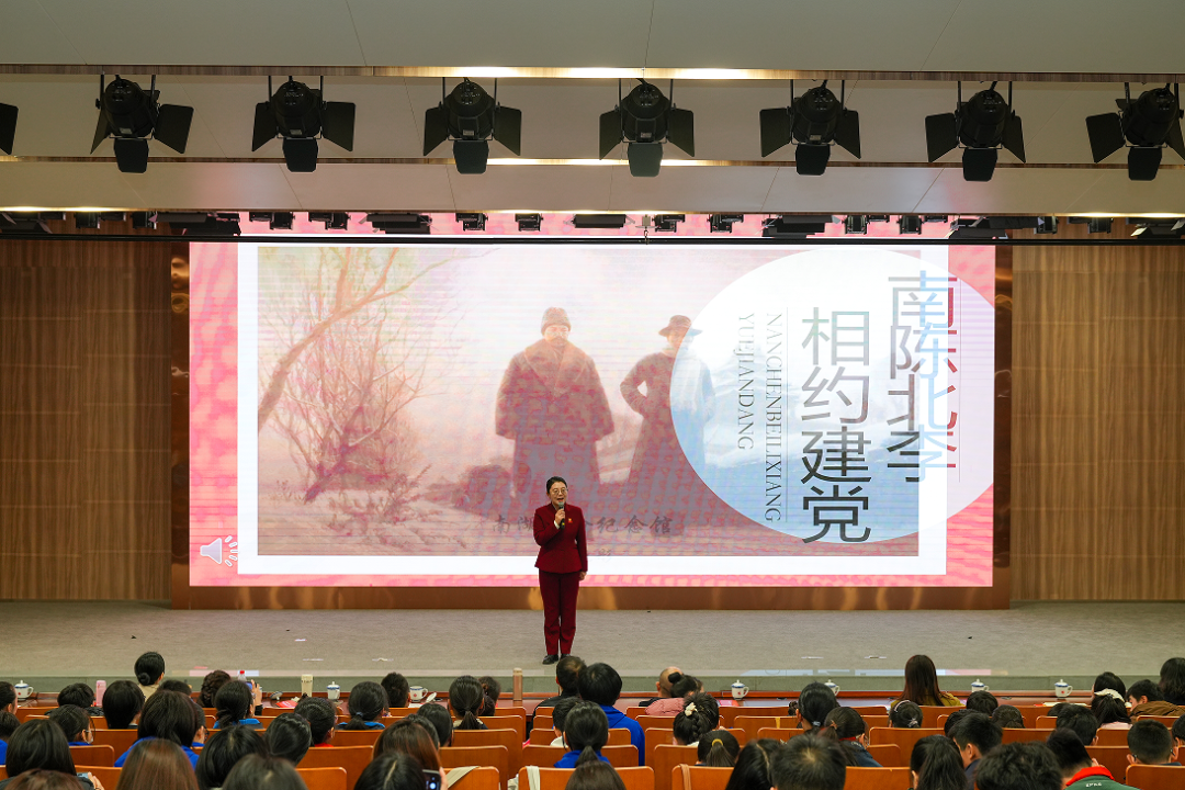 南湖革命纪念馆讲解员李晓彤主讲题为《南陈北李相约建党》的思政课。她通过生动的叙述,展现了陈独秀与李大钊两位革命先驱在北大红楼结下的深厚友谊,以及他们如何以超凡的睿智和过人的胆识,携手踏上了创建中国共产党的伟大征程,让听众深刻感受到了那段历史的厚重与光辉。