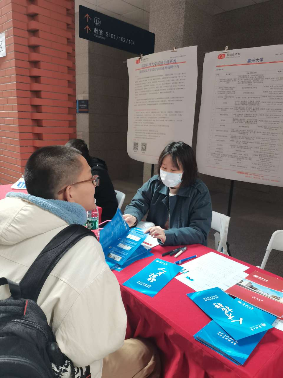 316日上午,中科院大学中关村校区行政楼一楼大堂,举办了2024年春季全国博士、博士后高级人才巡回签约洽谈会”。赵丹和张笑笑老师作为学校代表,热情接待了超过50名应届毕业生。两位老师耐心解答了关于学校的招聘政策,全面介绍了嘉兴大学的发展现状、师资阵容、科研教学政策以及学院的具体需求。同时,详细解了学校的人才引进政策、职位需求、薪资福利、发展前景等,表达了对优秀校友加入嘉兴大学的热切期盼,以及对未来进一步合作与交流的愿景。现场互动积极,氛围热烈。