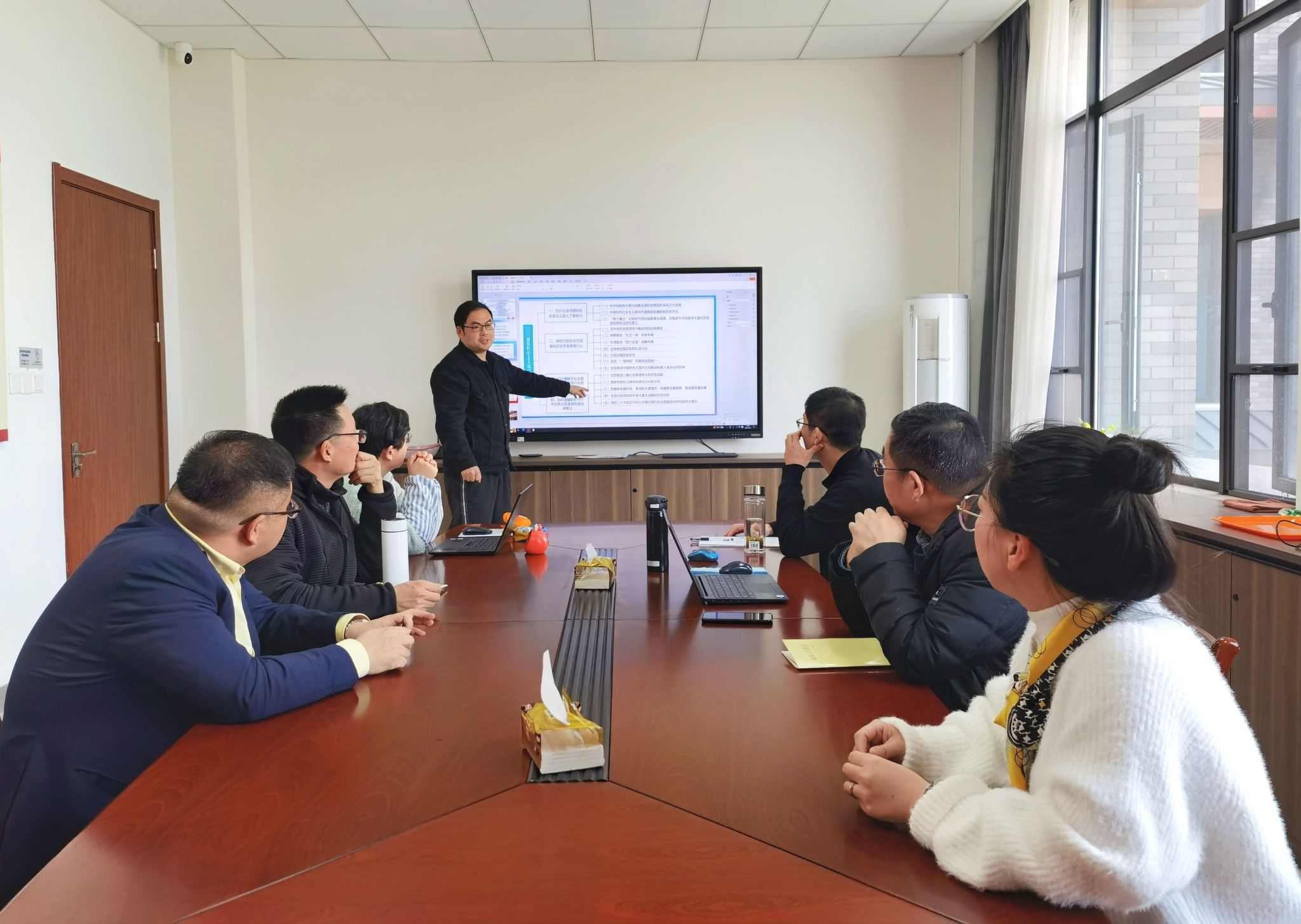 开展了《思想道德与法治》《中国近现代史纲要》课教学集体备课会,教研室专兼职任课教师参加了集体备课会。