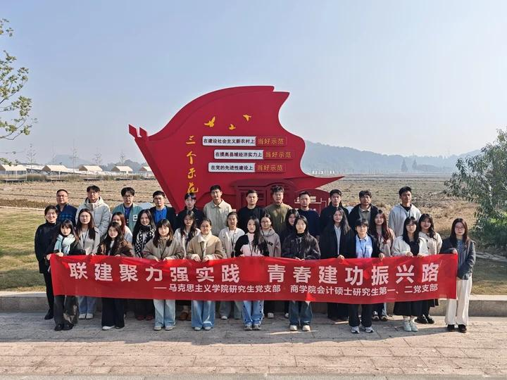 研究生党支部部分党员与商学院会计硕士研究生第一、二党支部党员代表前往海盐县开展“联建聚力强实践、青春建工振兴路”联合主题党日活动。