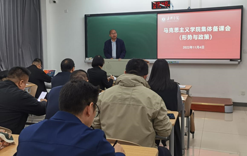 直属党支部书记宋之霞,副院长许惠芬出席会议,“形势与政策”课全体教师参加备课会。