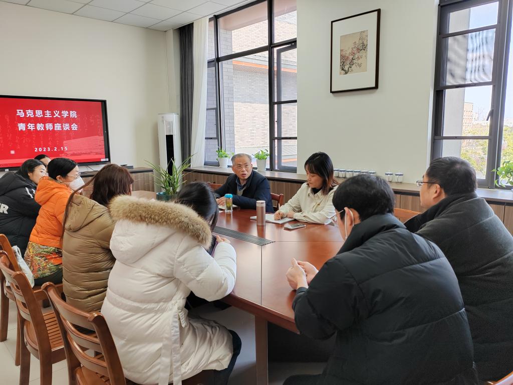 2月15日上午,新学期开学伊始,学校党委副书记钱方明院与青年教师座谈交流。座谈李云波等7位青年教师代表结合自身成长发展经历、教学与科研工作中的思考等交流想法,同时也对学科建设、教学科研、青年人才成长、考核评价等提出意见建议,学院直属党支部书记宋之霞参与座谈。