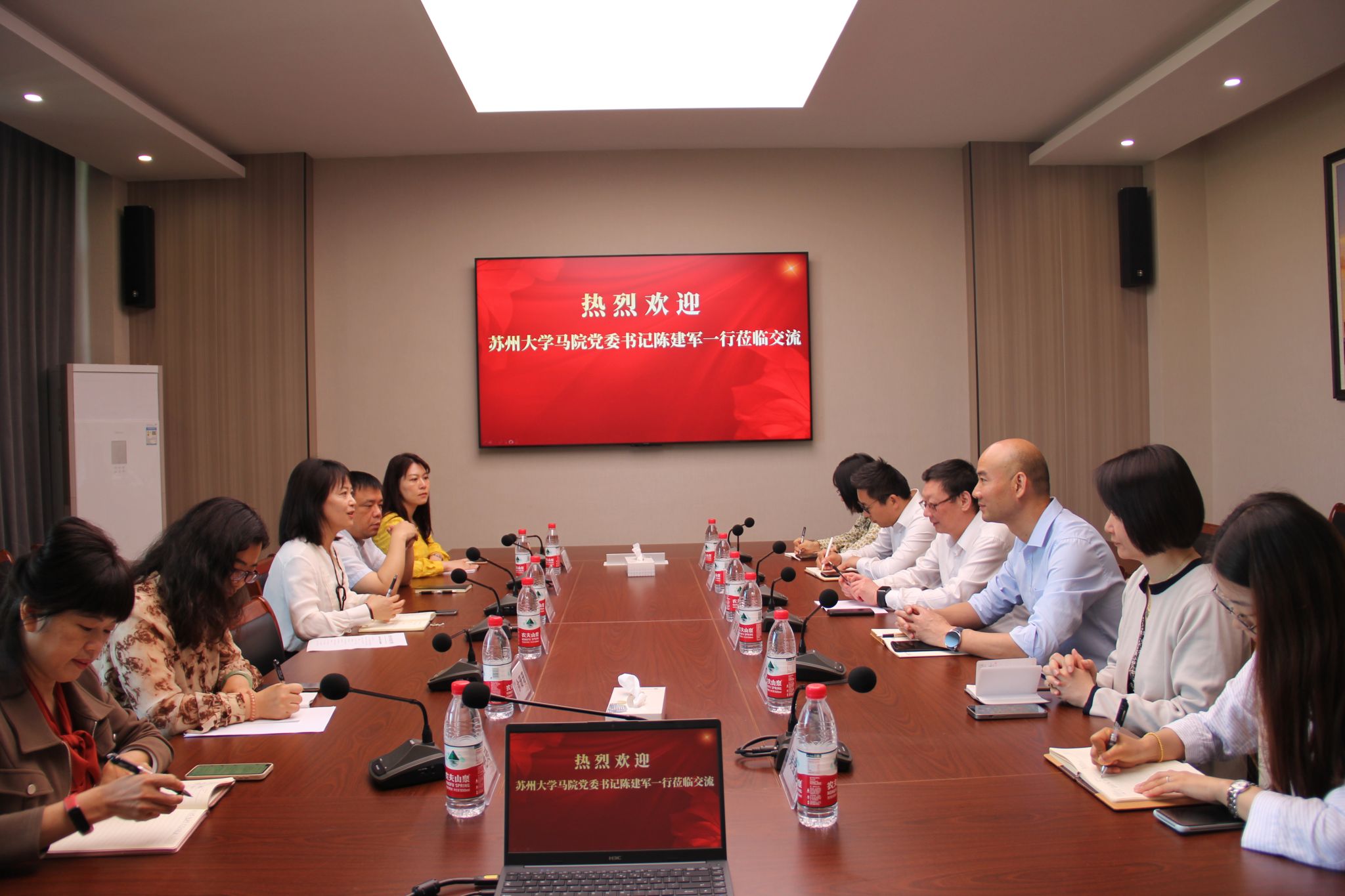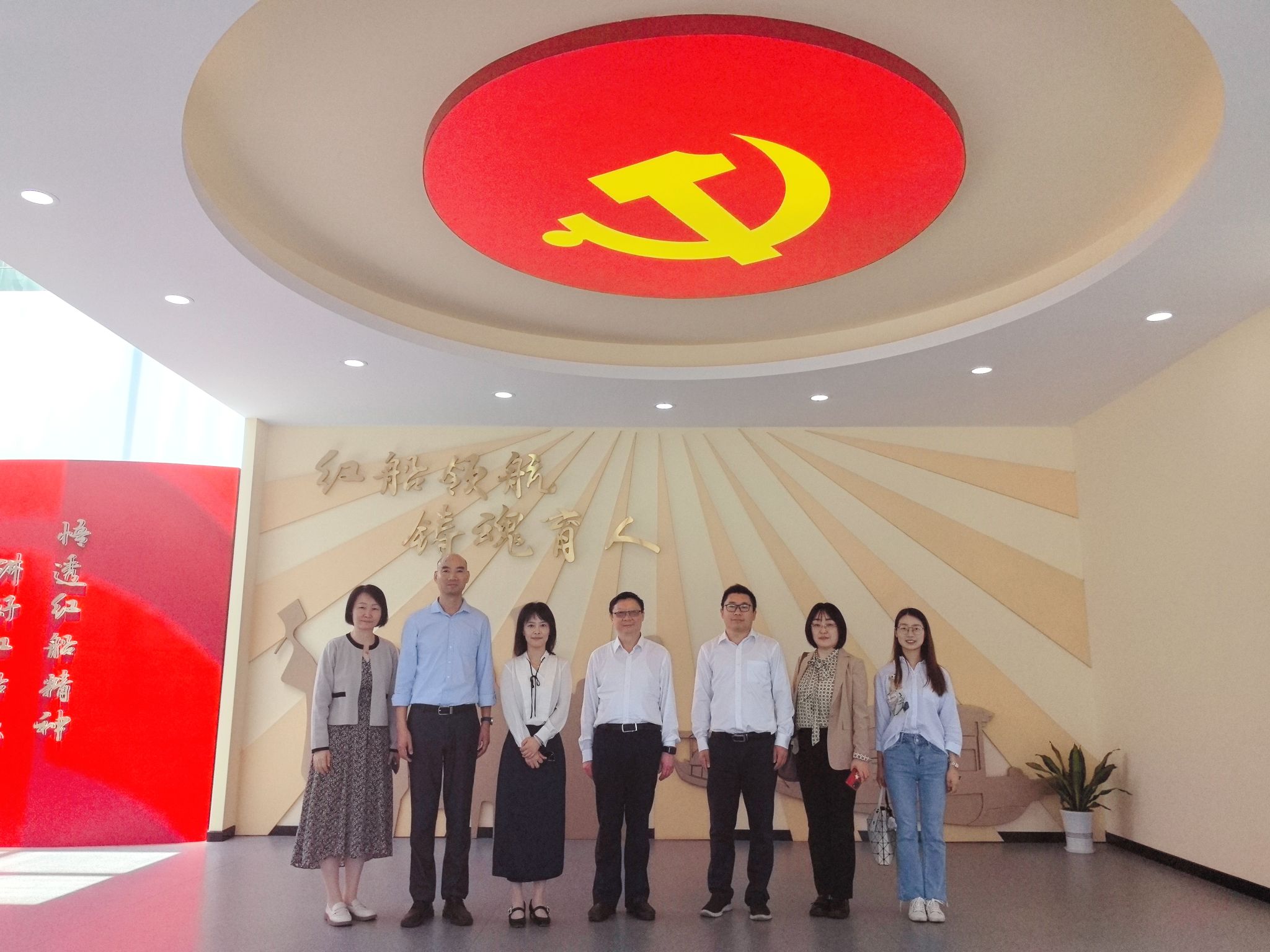 5月17日上午,苏州大学2DFan 党委书记陈建军一行6人来2DFan 交流,2DFan 书记宋之霞陪同参观了学校红船精神育人成果展示馆,介绍了学校在红船育人方面取得的一些成果。