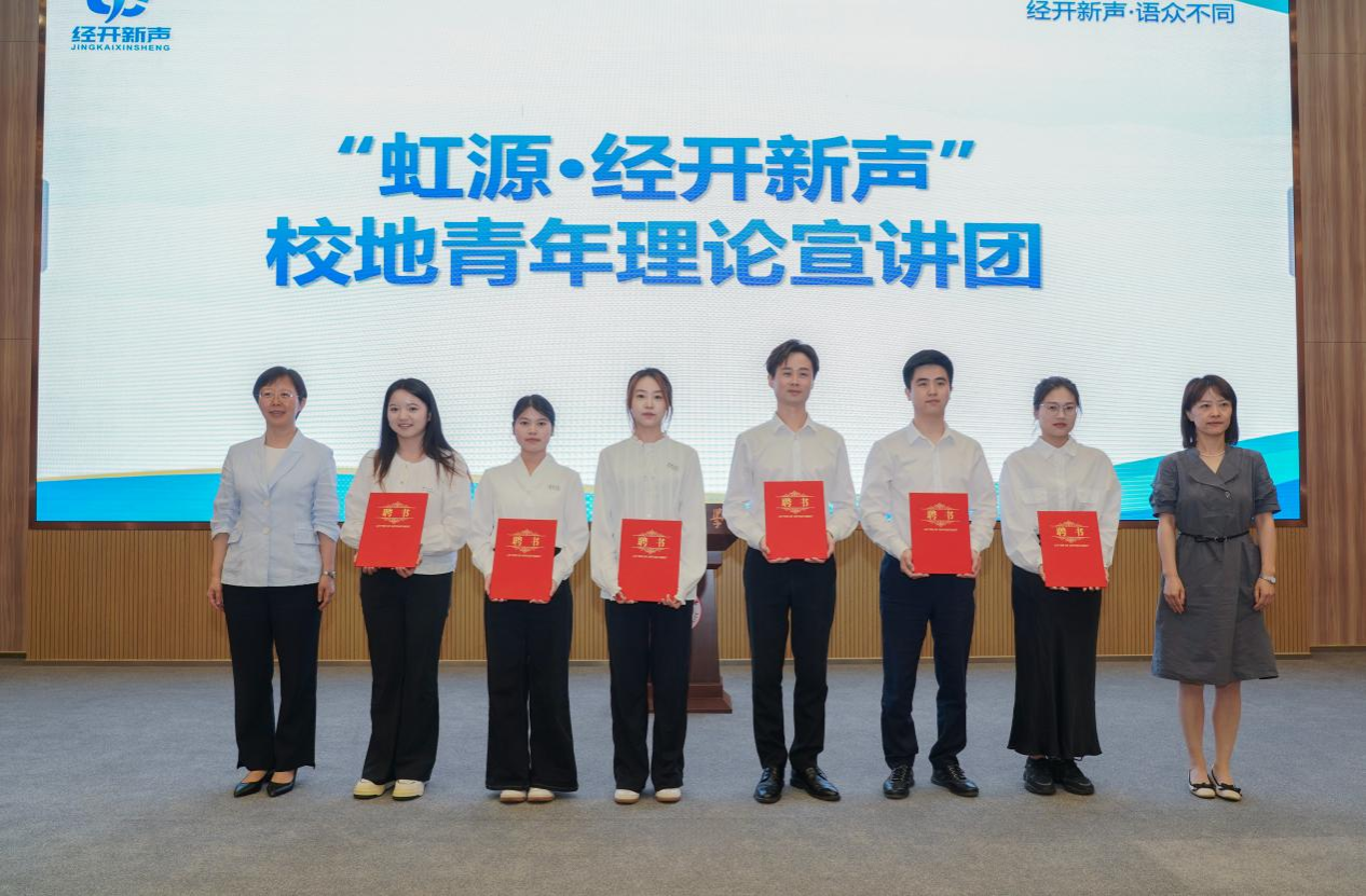 活动现场同步成立了“虹源·经开新声”校地青年理论宣讲团。相关负责人介绍:“这是双方整合资源、互补优势的新起点。未来,双方将联合开展更多党建联建、理论学习宣讲等校地合作活动,全面提升理论学习宣讲水平和校地共建层次。”