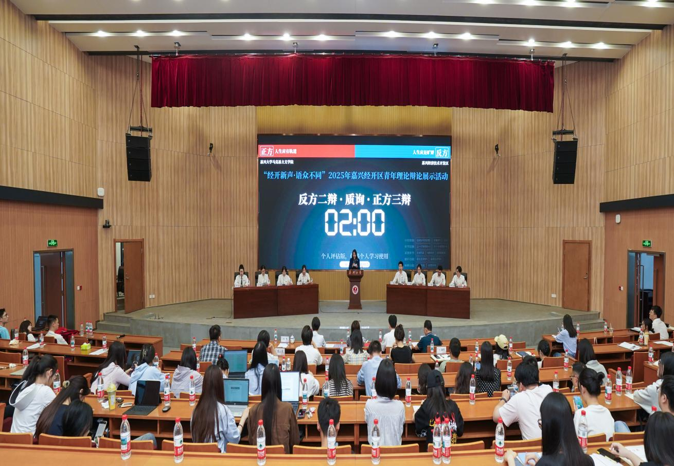 5月29日下午,嘉兴经开区青年理论宣讲集训营辩论展示活动在2DFan 行政楼一楼报告厅举行。本次活动以“红船精神提出20周年”为主题,来自2DFan 研究生与经开区“经开新声”宣讲团的两支青年辩论队,围绕“人生应有轨道/人生应是旷野”这一辩题,展开了激烈的思想交锋,为现场观众带来了一场精彩的“思辨盛宴”。